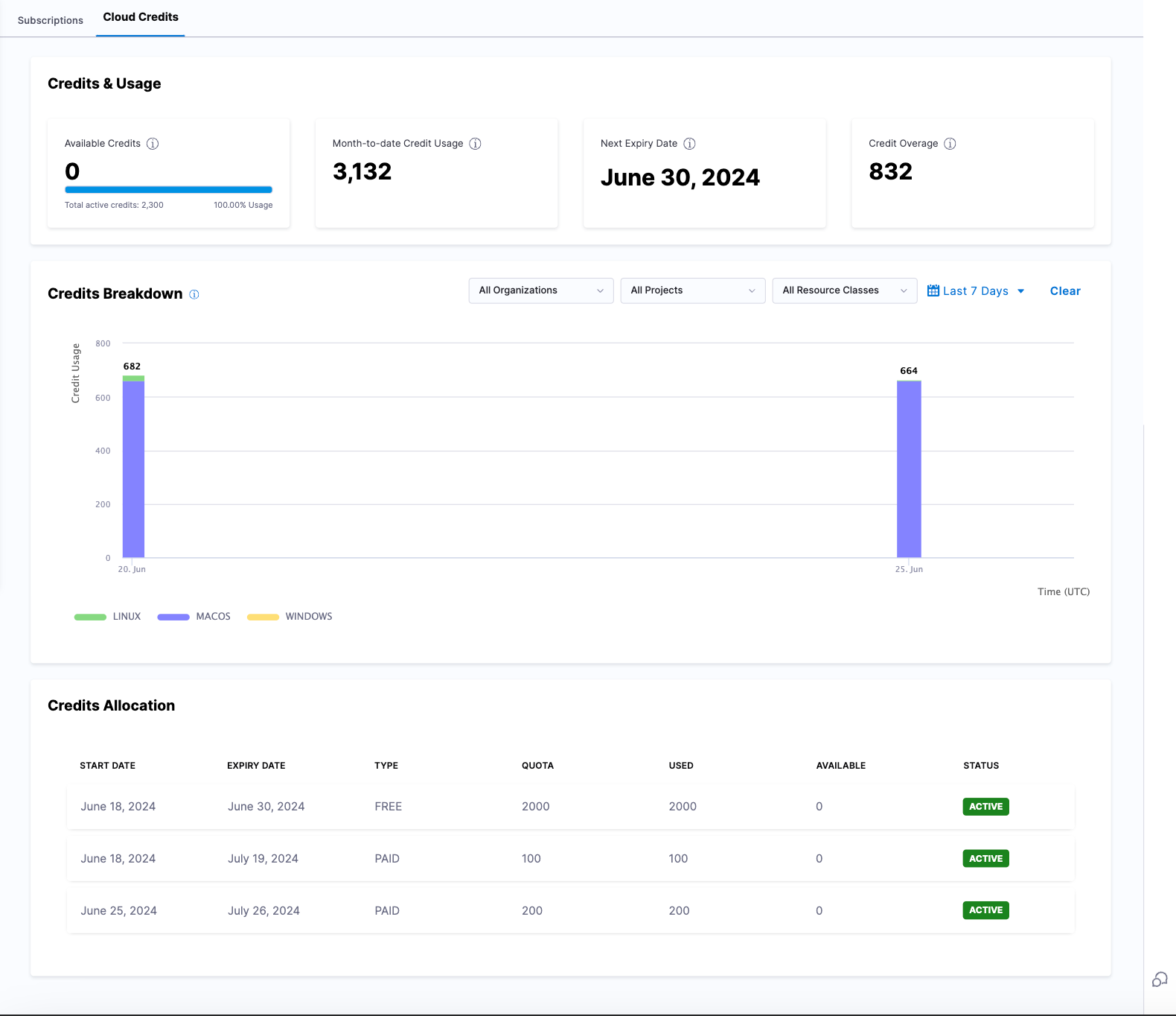 - Used: Credits consumed during the active credit period.