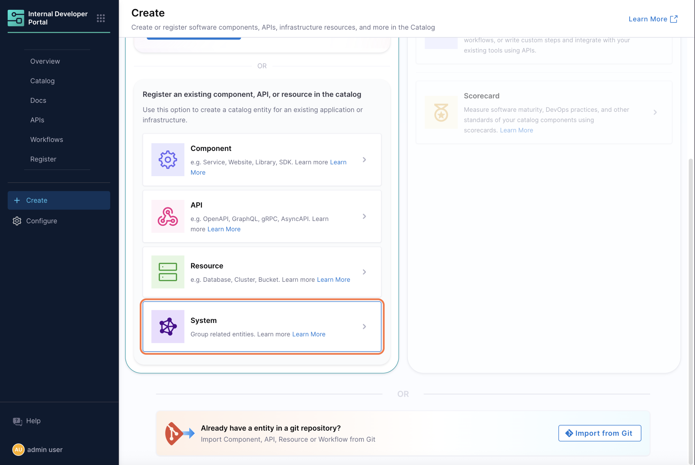 • Define Systems using the IDP UI, YAML, or the Create Entity API (kind: System).